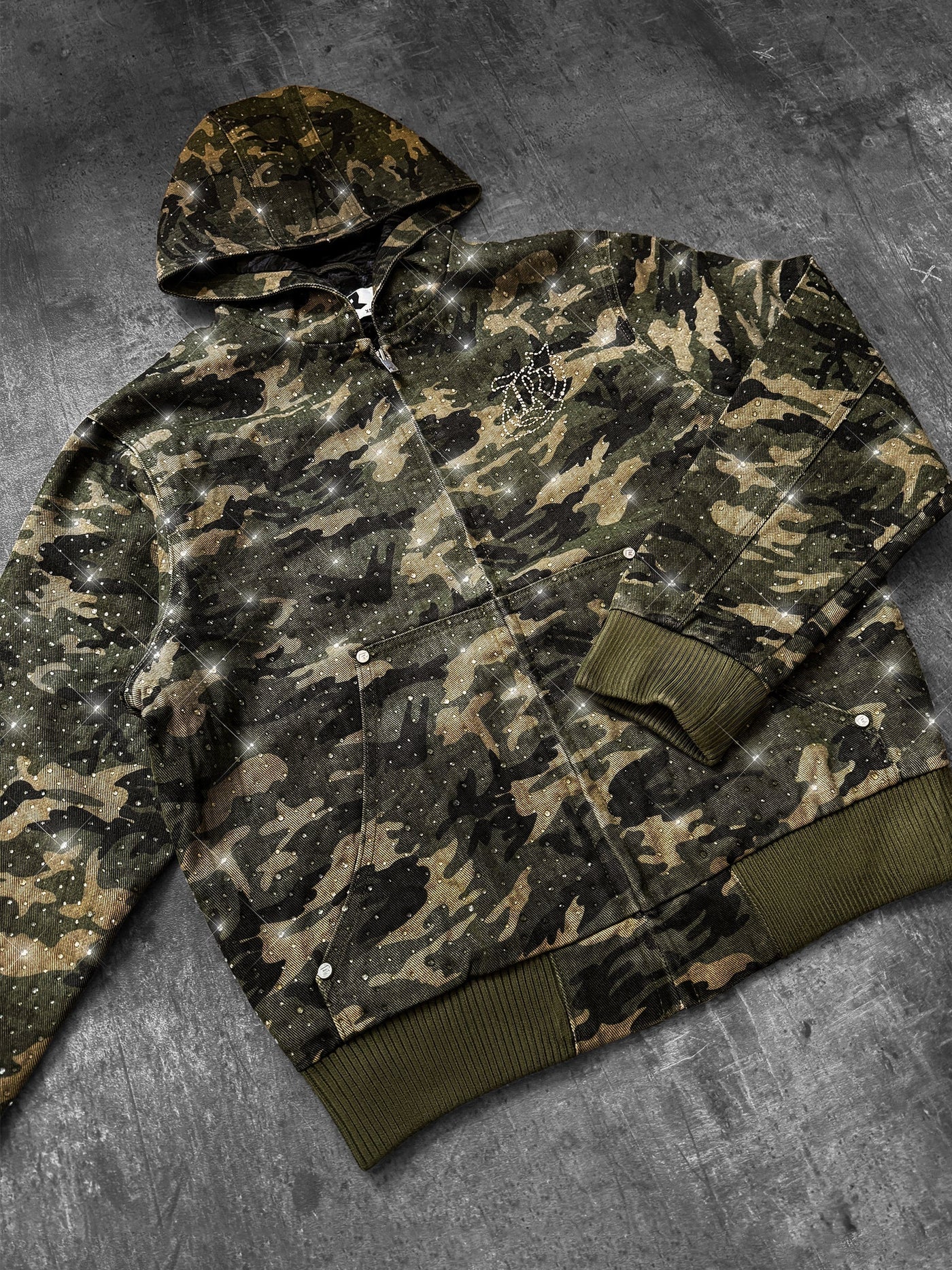 The Diamond Camo Jacket in Khaki by Reputation Studios combines tactical style with practical comfort. Crafted from durable materials, it offers reliable protection against the elements while maintaining breathability. Its distinctive diamond camo pattern enhances visual appeal without compromising versatility, making it suitable for both outdoor activities and urban wear. Designed with expert attention to detail, this jacket ensures functional pockets and a comfortable fit, providing a balance between rugged performance and modern design.